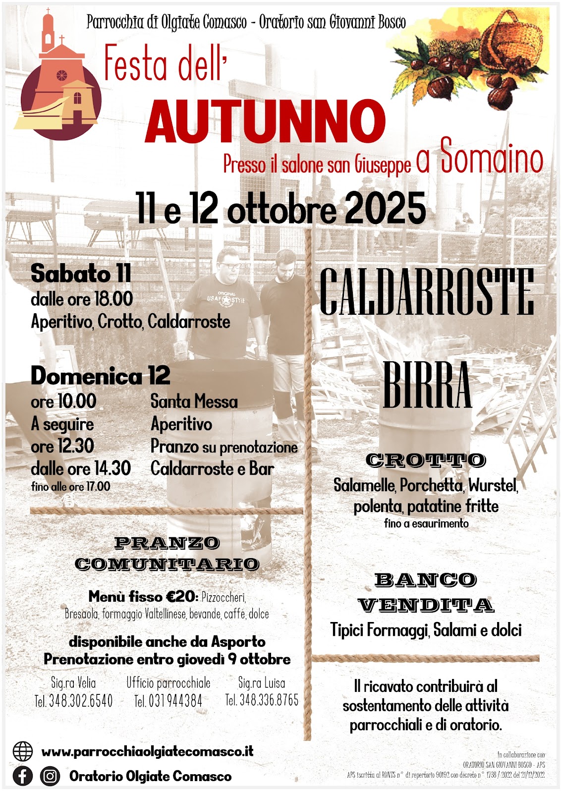 I prossimi sabato 11 e domenica 12 ottobre si terrà la tradizionale Festa dell’Autunno a Somaino.